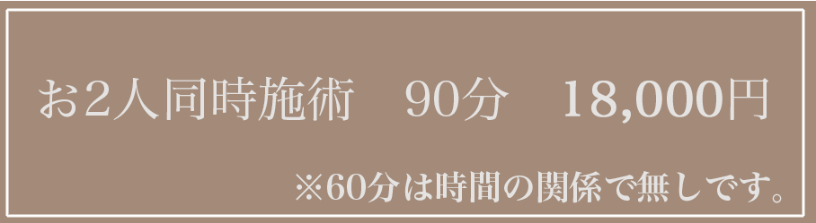主に体の2ヶ所の施術、または体1ヶ所と顔の施術を行います。
